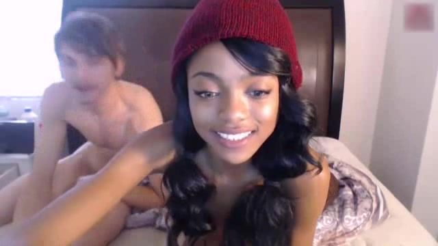 Домашнее видео молодой интернациональной парочки, негритянки с белым пареньком. Молодые пробуют заняться анальным сексом используя смазку