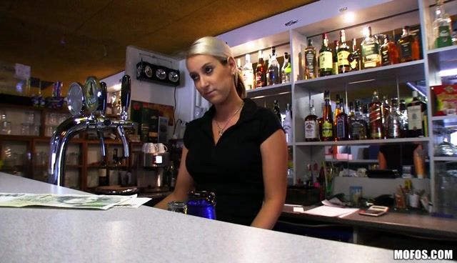 Барменша стала взаимно отвечать на подкаты пьяного мужика и вскоре отправилась с ним в подсобку, где он вывалил толстый хуй и дал ей на клык. Шлюшка после минета раздвинула рогатку и начала ебаться с факером от первого лица. Чувак периодически снова дает девице на клык, а потом продолжает ебать, доводя её до апогея. Барменша потрахалась с клиентом и вскоре получила много спермы на большие дойки.